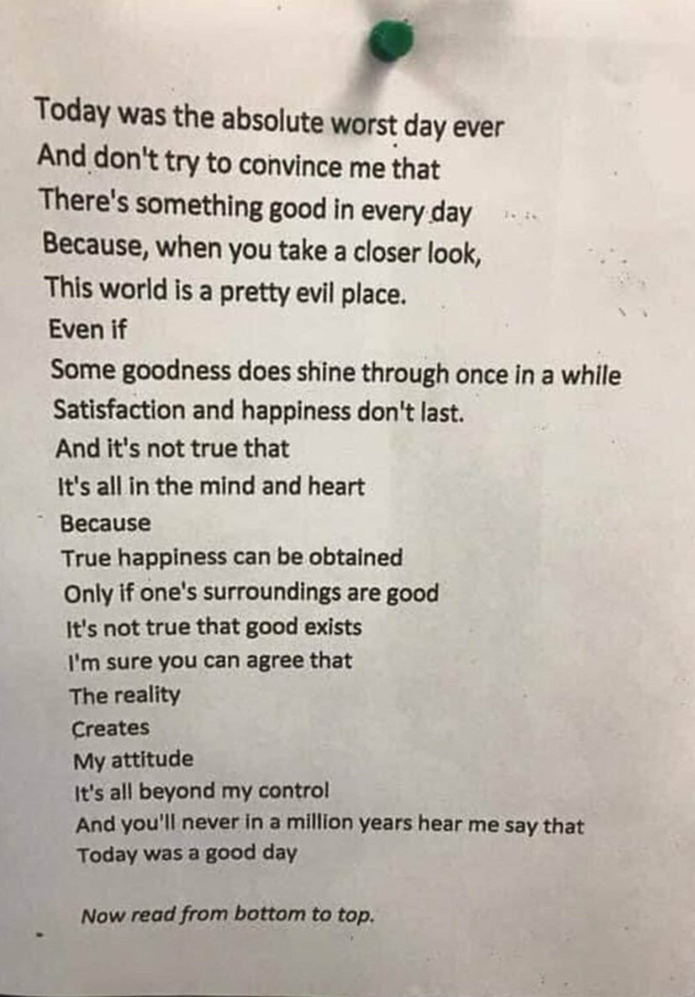 Today Was The Worst Day Ever. Now Read From Bottom To Top